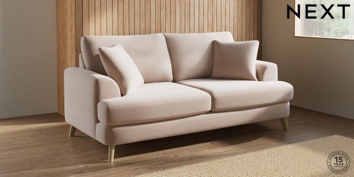 7.3.1 Buy Parker 3 Seater Sofa Relaxed Linen Look Mid Natural Low Retro Tapered - Light from the Next UK online shop Click here to use our accessible website