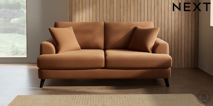 7.2.5 Buy Parker 3 Seater Sofa Ripple Chenille Mid Rust Brown Low Retro Tapered - Dark from the Next UK online shop Click here to use our accessible website