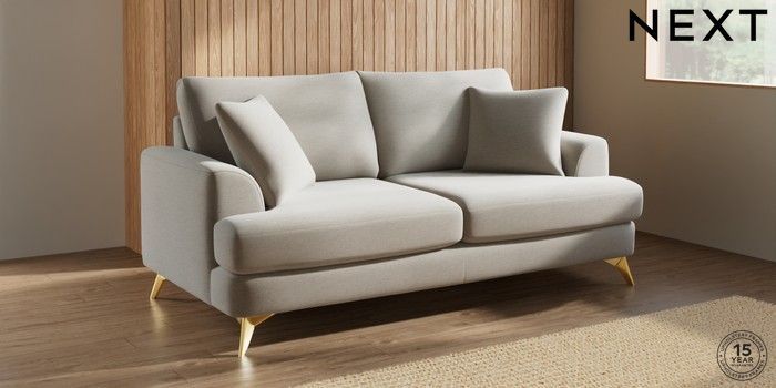 7.2.10 Buy Parker 3 Seater Sofa Ripple Chenille Light Natural High Metal - Brass from the Next UK online shop Click here to use our accessible website