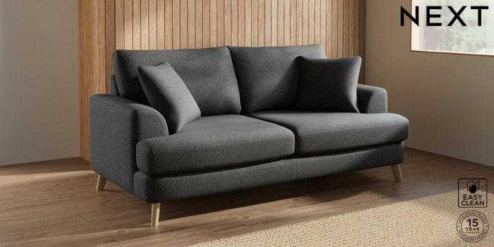 7.3.1 Buy Parker 3 Seater Sofa Tweedy Blend Easy Clean Charcoal Grey Low Retro Tapered - Light from the Next UK online shop Click here to use our accessible website