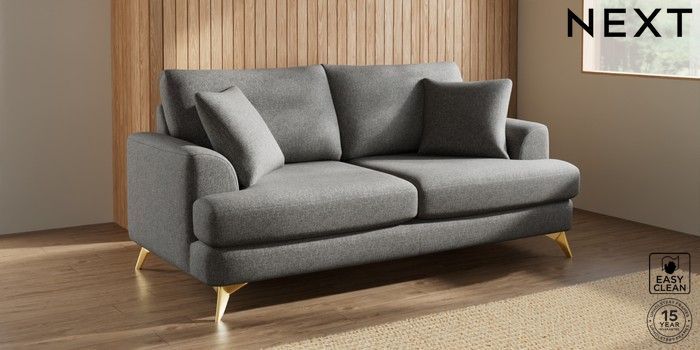 7.3.1 Buy Parker 3 Seater Sofa Tweedy Blend Easy Clean Dark Grey High Metal - Brass from the Next UK online shop Click here to use our accessible website