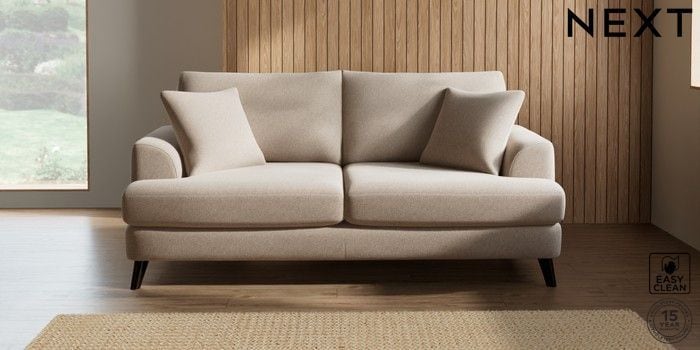7.2.6 Buy Parker 3 Seater Sofa Tweedy Blend Easy Clean Light Dove Natural Low Retro Tapered - Dark from the Next UK online shop Click here to use our accessible website