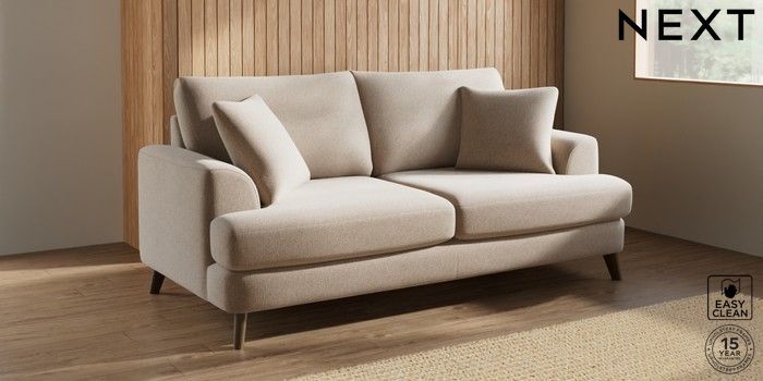 7.3.1 Buy Parker 3 Seater Sofa Tweedy Blend Easy Clean Light Dove Natural Low Retro Tapered - Mid from the Next UK online shop Click here to use our accessible website