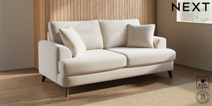 7.3.1 Buy Parker 3 Seater Sofa Tweedy Blend Easy Clean Oyster Low Retro Tapered - Mid from the Next UK online shop Click here to use our accessible website