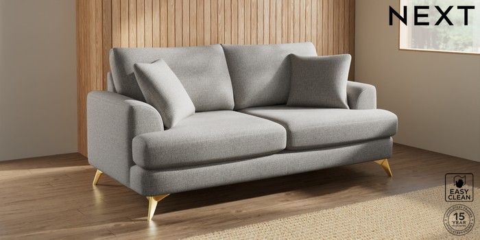 7.2.10 Buy Parker 3 Seater Sofa Woven Chenille Easy Clean Light Grey High Metal - Brass from the Next UK online shop Click here to use our accessible website