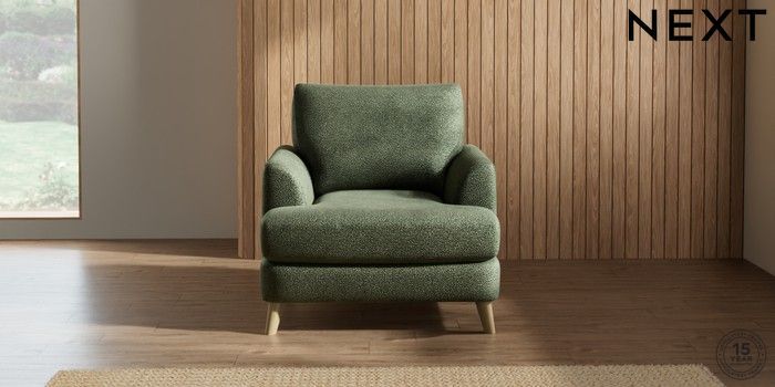 7.2.5 Buy Parker Armchair Boucle Chenille Dark Moss Green Low Retro Tapered - Light from the Next UK online shop Click here to use our accessible website