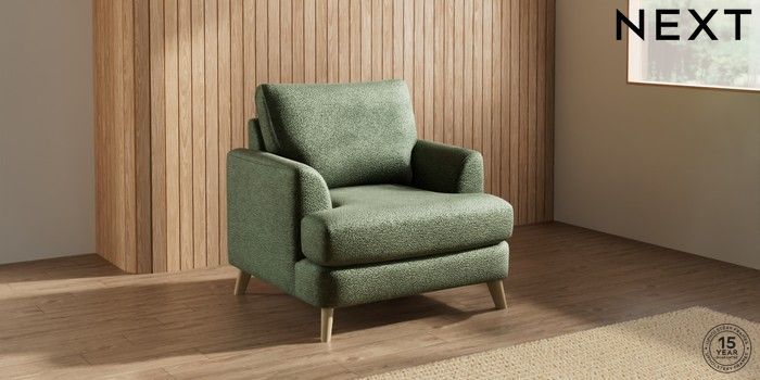 7.3.1 Buy Parker Armchair Boucle Chenille Dark Moss Green Low Retro Tapered - Light from the Next UK online shop Click here to use our accessible website