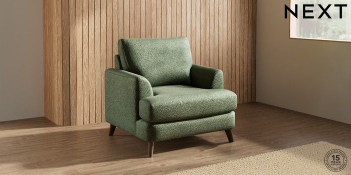 7.3.1 Buy Parker Armchair Boucle Chenille Dark Moss Green Low Retro Tapered - Mid from the Next UK online shop Click here to use our accessible website