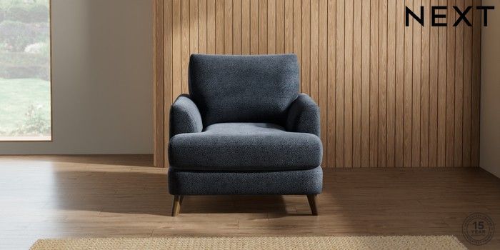 7.2.5 Buy Parker Armchair Boucle Chenille Dark Slate Blue Low Retro Tapered - Mid from the Next UK online shop Click here to use our accessible website