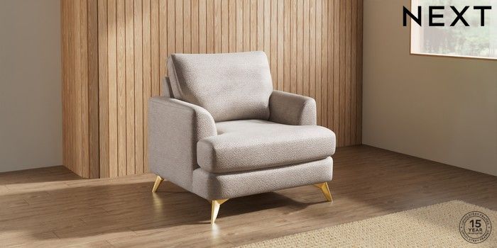 7.3.1 Buy Parker Armchair Boucle Chenille Light Natural High Metal - Brass from the Next UK online shop Click here to use our accessible website