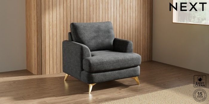 7.3.1 Buy Parker Armchair Boucle Weave Easy Clean Charcoal Grey High Metal - Brass from the Next UK online shop Click here to use our accessible website