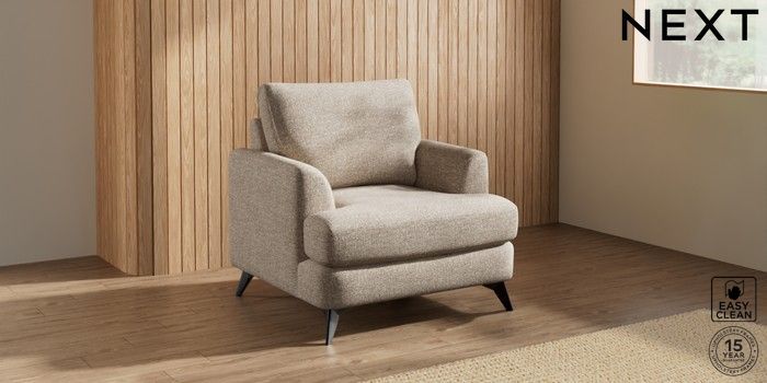 7.3.1 Buy Parker Armchair Chunky Boucle Easy Clean Mid Natural High Metal - Black from the Next UK online shop Click here to use our accessible website