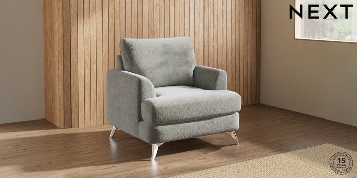 7.2.10 Buy Parker Armchair Chunky Chenille Light Grey High Metal - Chrome from the Next UK online shop Click here to use our accessible website