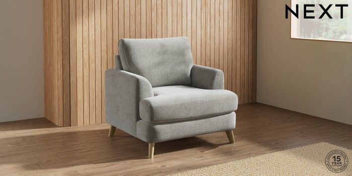 7.0.3 Buy Parker Armchair Chunky Chenille Light Grey Low Retro Tapered - Light from the Next UK online shop Click here to use our accessible website