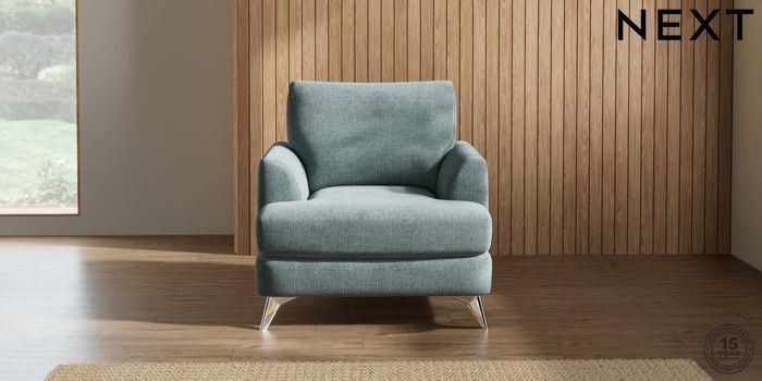 7.2.5 Buy Parker Armchair Chunky Chenille Light Teal Green High Metal - Chrome from the Next UK online shop Click here to use our accessible website