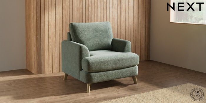 7.2.10 Buy Parker Armchair Chunky Texture Mid Forest Green Low Retro Tapered - Light from the Next UK online shop Click here to use our accessible website