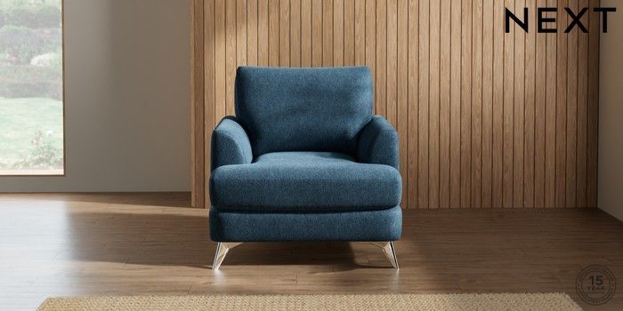7.2.5 Buy Parker Armchair Cotswold Chenille Dark Blue High Metal - Chrome from the Next UK online shop Click here to use our accessible website