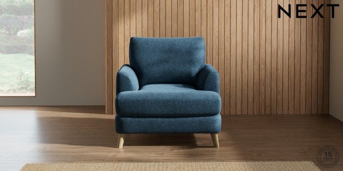 7.2.5 Buy Parker Armchair Cotswold Chenille Dark Blue Low Retro Tapered - Light from the Next UK online shop Click here to use our accessible website
