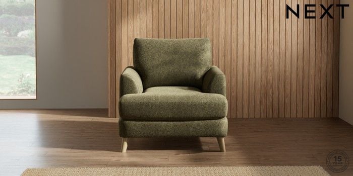 7.2.5 Buy Parker Armchair Cotswold Chenille Dark Green Low Retro Tapered - Light from the Next UK online shop Click here to use our accessible website