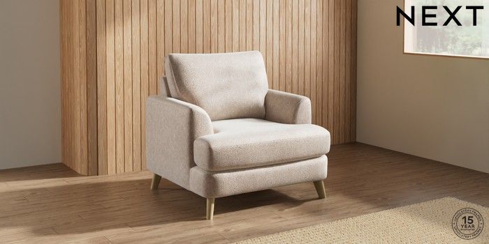 7.2.10 Buy Parker Armchair Cotswold Chenille Light Natural Low Retro Tapered - Light from the Next UK online shop Click here to use our accessible website