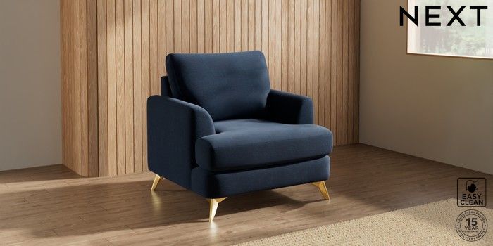7.3.1 Buy Parker Armchair Fine Chenille Easy Clean Dark Navy Blue High Metal - Brass from the Next UK online shop Click here to use our accessible website