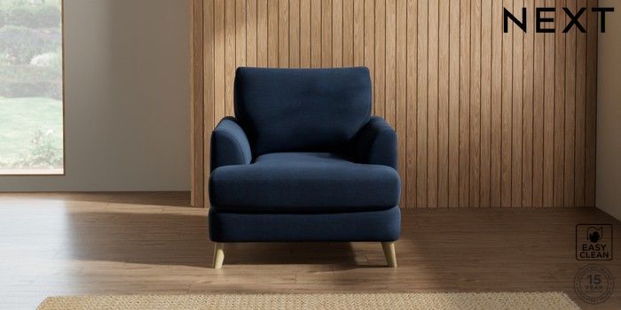 7.2.5 Buy Parker Armchair Fine Chenille Easy Clean Dark Navy Blue Low Retro Tapered - Light from the Next UK online shop Click here to use our accessible website