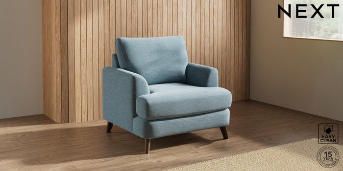 7.3.1 Buy Parker Armchair Fine Chenille Easy Clean Mid Blue Low Retro Tapered - Mid from the Next UK online shop Click here to use our accessible website