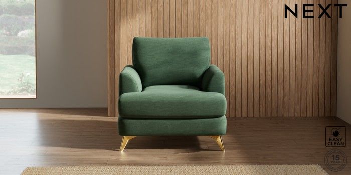 7.2.5 Buy Parker Armchair Fine Chenille Easy Clean Mid Khaki Green High Metal - Brass from the Next UK online shop Click here to use our accessible website