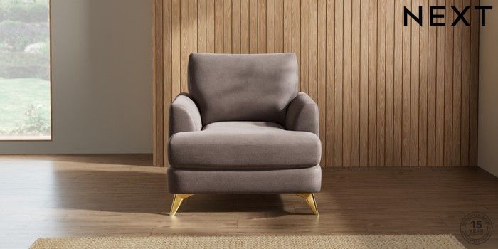 7.2.5 Buy Parker Armchair Luxe Chenille Mink Brown High Metal - Brass from the Next UK online shop Click here to use our accessible website