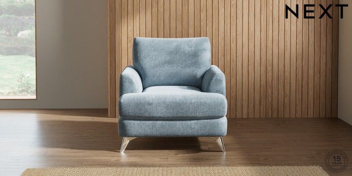 7.2.6 Buy Parker Armchair Plush Chenille Light Blue High Metal - Chrome from the Next UK online shop Click here to use our accessible website