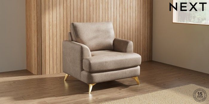 7.3.1 Buy Parker Armchair Plush Chenille Mid Natural High Metal - Brass from the Next UK online shop Click here to use our accessible website
