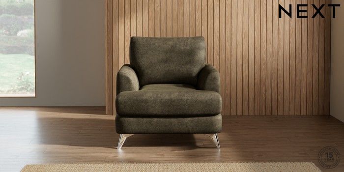 7.2.5 Buy Parker Armchair Plush Chenille Moss Green High Metal - Chrome from the Next UK online shop Click here to use our accessible website