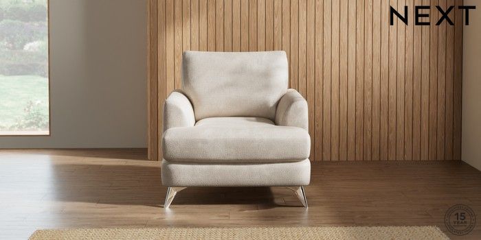 7.2.5 Buy Parker Armchair Plush Chenille Oyster High Metal - Chrome from the Next UK online shop Click here to use our accessible website