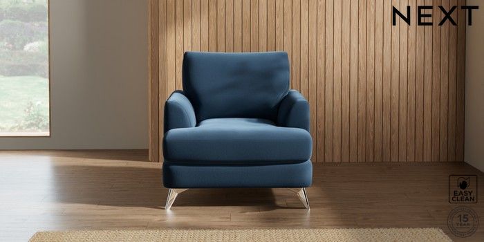 7.2.5 Buy Parker Armchair Plush Velvet Easy Clean Airforce Blue High Metal - Chrome from the Next UK online shop Click here to use our accessible website