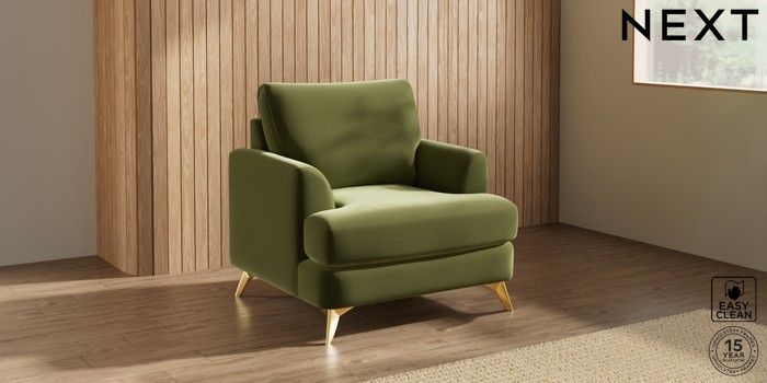 7.3.1 Buy Parker Armchair Plush Velvet Easy Clean Mid Olive Green High Metal - Brass from the Next UK online shop Click here to use our accessible website