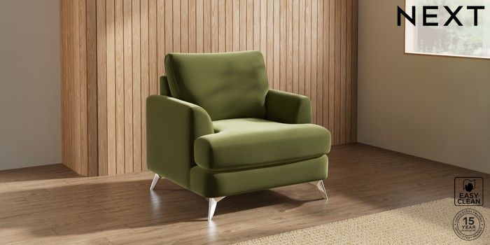 7.3.1 Buy Parker Armchair Plush Velvet Easy Clean Mid Olive Green High Metal - Chrome from the Next UK online shop Click here to use our accessible website