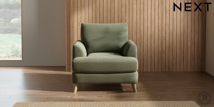 7.2.5 Buy Parker Armchair Ripple Chenille Mid Moss Green Low Retro Tapered - Light from the Next UK online shop Click here to use our accessible website