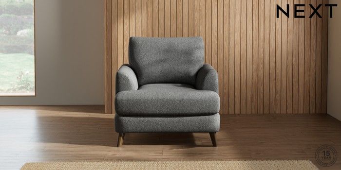 7.2.5 Buy Parker Armchair Tweedy Chenille Dark Grey Low Retro Tapered - Mid from the Next UK online shop Click here to use our accessible website