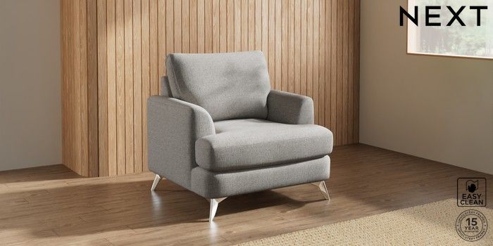 7.2.5 Buy Parker Armchair Woven Chenille Easy Clean Light Grey High Metal - Chrome from the Next UK online shop Click here to use our accessible website
