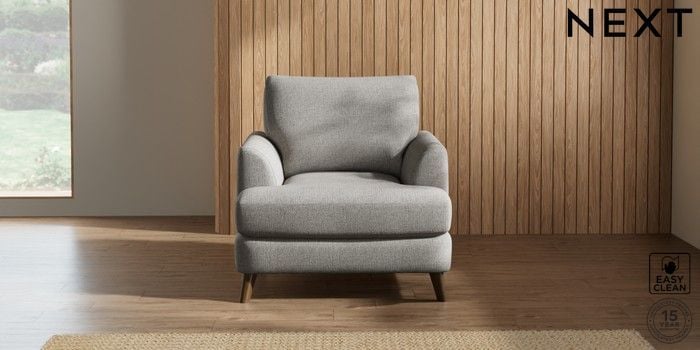 7.2.5 Buy Parker Armchair Woven Chenille Easy Clean Light Grey Low Retro Tapered - Mid from the Next UK online shop Click here to use our accessible website