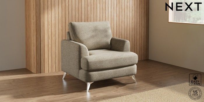 7.3.1 Buy Parker Armchair Woven Chenille Easy Clean Mid Natural High Metal - Chrome from the Next UK online shop Click here to use our accessible website