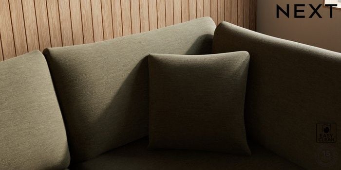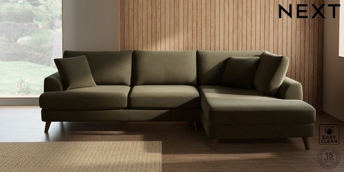 7.2.10 Buy Parker Large Corner Chaise - Right Hand Fine Chenille Easy Clean Dark Moss Green Low Retro Tapered - Mid from the Next UK online shop Click here to use our accessible website