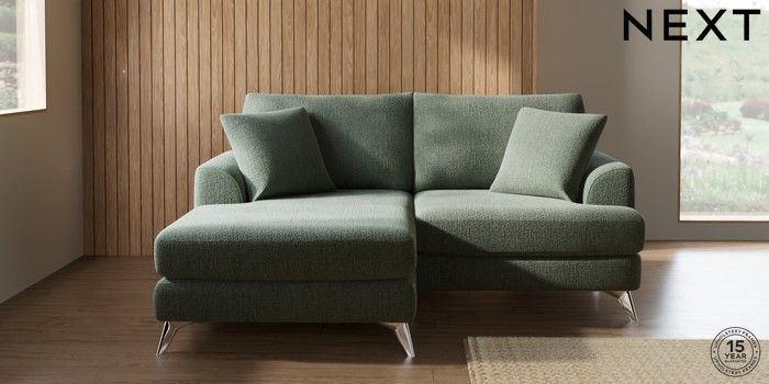 7.2.6 Buy Parker Compact Sofa Chaise - Universal Chunky Texture Mid Forest Green High Metal - Chrome from the Next UK online shop Click here to use our accessible website