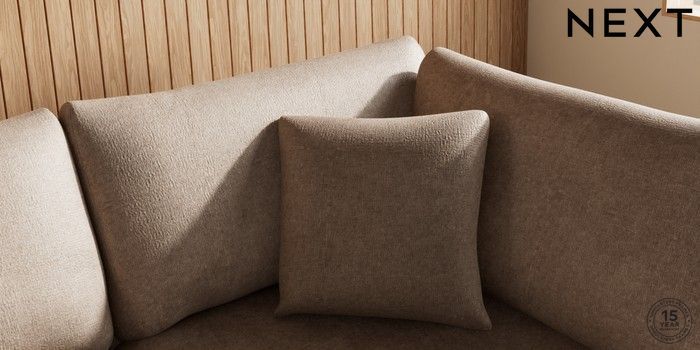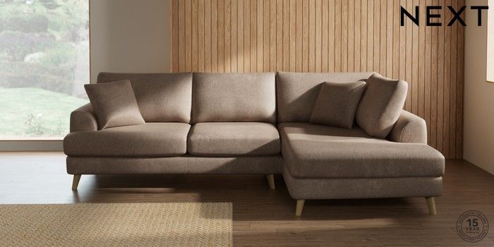 7.2.10 Buy Parker Medium Corner Chaise - Right Hand Plush Chenille Mid Natural Low Retro Tapered - Light from the Next UK online shop Click here to use our accessible website