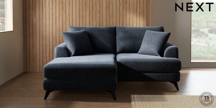7.2.10 Buy Parker Compact Sofa Chaise - Universal Boucle Chenille Dark Slate Blue High Metal - Black from the Next UK online shop Click here to use our accessible website