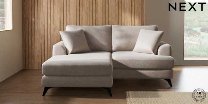 7.2.10 Buy Parker Compact Sofa Chaise - Universal Boucle Chenille Light Natural High Metal - Black from the Next UK online shop Click here to use our accessible website