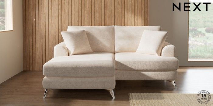 7.2.10 Buy Parker Compact Sofa Chaise - Universal Boucle Chenille Oyster High Metal - Chrome from the Next UK online shop Click here to use our accessible website