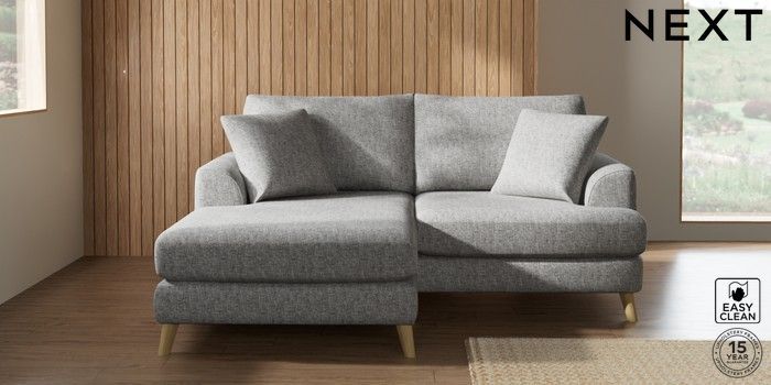 7.2.5 Buy Parker Compact Sofa Chaise - Universal Chunky Boucle Easy Clean Light Grey Low Retro Tapered - Light from the Next UK online shop Click here to use our accessible website