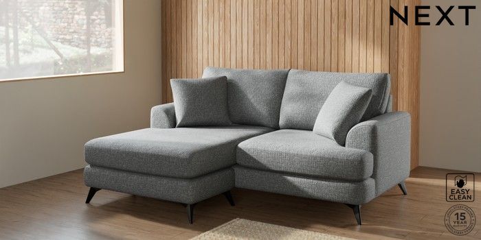 7.2.5 Buy Parker Compact Sofa Chaise - Universal Chunky Boucle Easy Clean Mid Grey High Metal - Black from the Next UK online shop Click here to use our accessible website