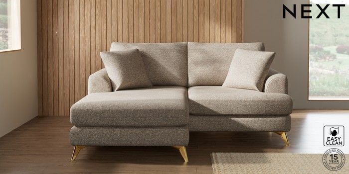 7.2.10 Buy Parker Compact Sofa Chaise - Universal Chunky Boucle Easy Clean Mid Natural High Metal - Brass from the Next UK online shop Click here to use our accessible website